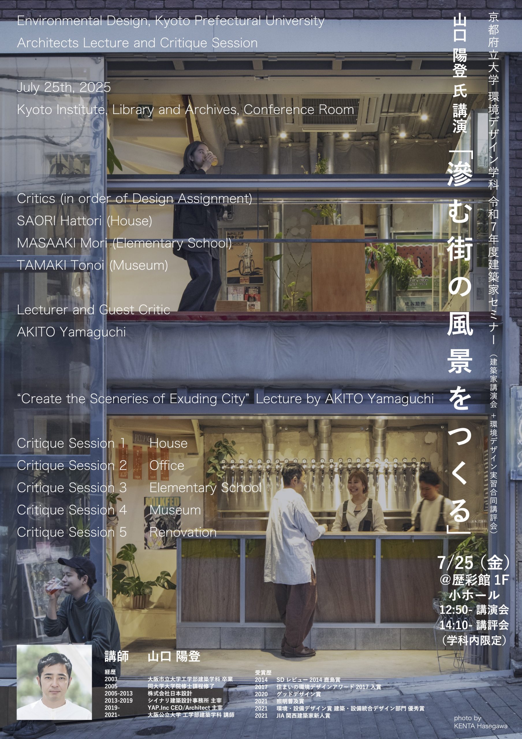 京都府立大学 環境デザイン学科 建築家セミナーに山口陽登が講演+ゲストジュリストとして登壇します。