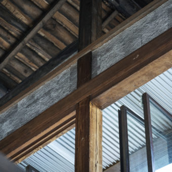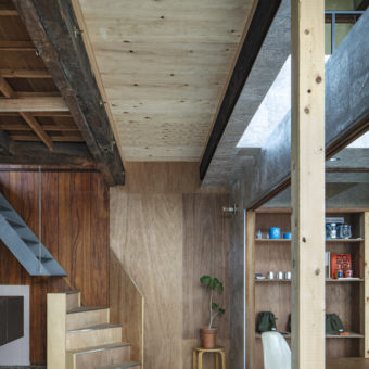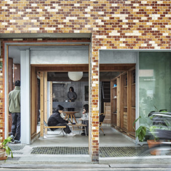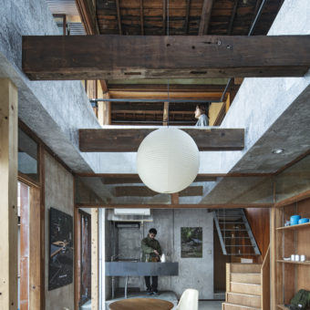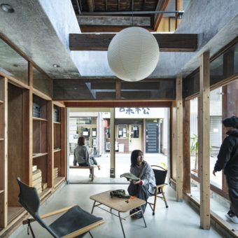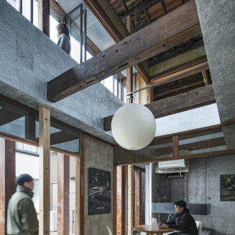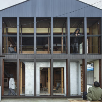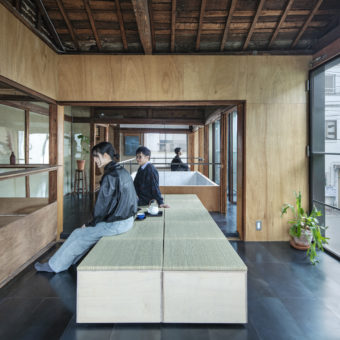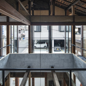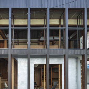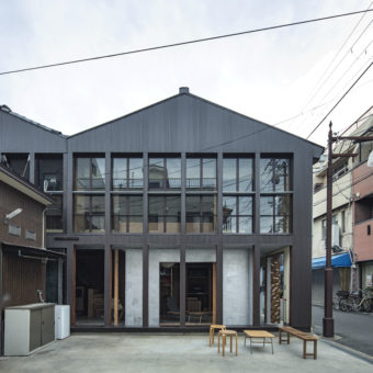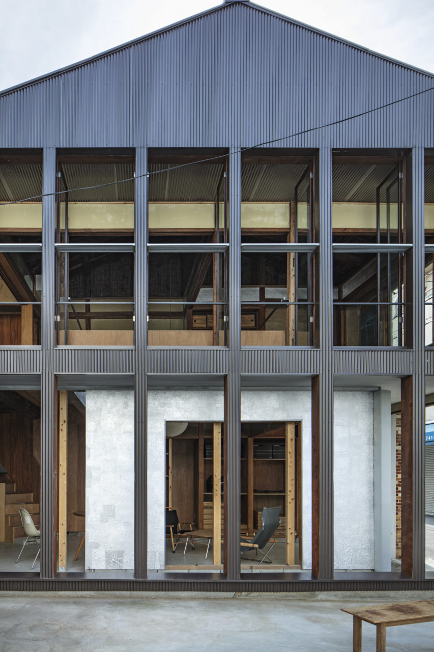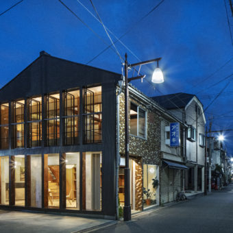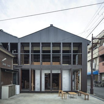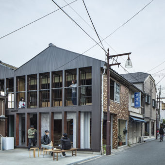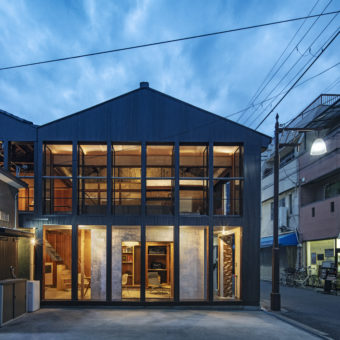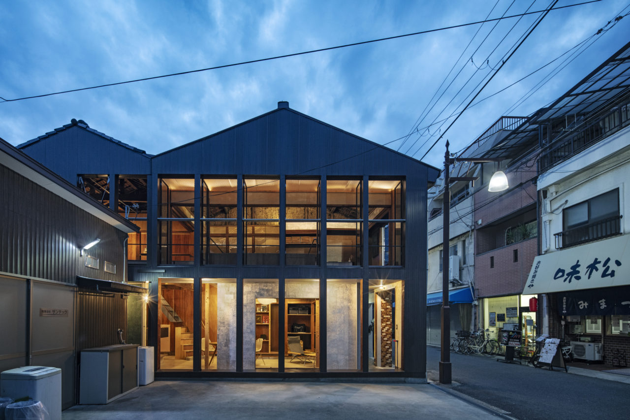 大阪・鶴橋に建つ築103年の二軒長屋の一軒を立ち寄り場にコンバージョンするプロジェクトである。元は3軒長屋だったが、北側が切り離し解体されたため、現在は2軒長屋でその北側1軒である。婦人服の縫製を生業としていた店主とその家族が、1Fを工房、2Fを住宅として利用して、長年、職住一体の生活を営んでいた。しかし高齢を理由に周辺のマンションに移り住み、この建築は空き家化した。